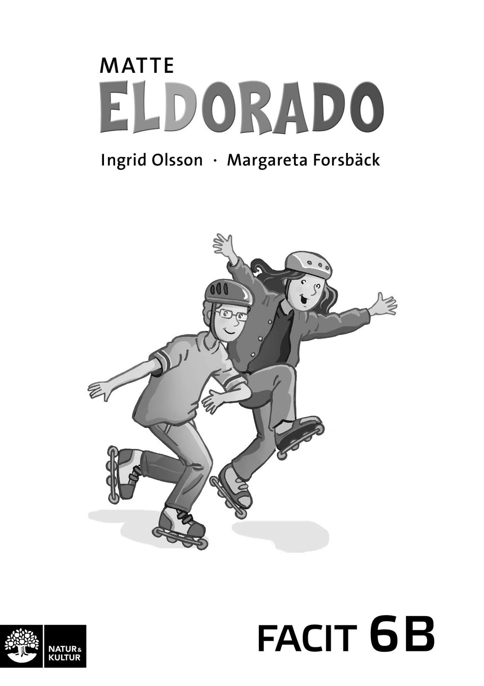 Kapitlet avslutats med utvärdering, fördiagnos inför nästa kapitel, repetition samt ett uppslag med klurig problemlösning. Grundbok 6B Grundbok 6B skiljer sig lite från övriga grundböcker. Efter bokens två första kapitel följer en repetitionsdel, med uppgifter som är strukturerade efter kursplanens områden. Uppgifterna behöver inte göras i någon speciell ordning, du bestämmer vilka områden dina elever behöver arbeta med. Varje område är indelat i delområden som börjar med en utforskarsida och sedan följer uppgifter att arbeta med på egen hand. Till varje delområde finns en diagnos. Grundbok Skriva För en del elever blir en vanlig grundbok för mycket att ta till sig matematiskt och många har svårigheter att hantera ett separat räknehäfte. I Grundbok Skriva skriver eleverna direkt i boken, och boken innehåller grundkursen som de behöver för att klara godkänt betyg i matematik åk 6. Eldorado Skriva är så lik grundboken som möjligt och har samma upplägg och innehåll, men saknar uppgifter på röd nivå. Grundkurs och blå sidor är förenklade på olika sätt: * konkretiseringar för att underlätta förståelse