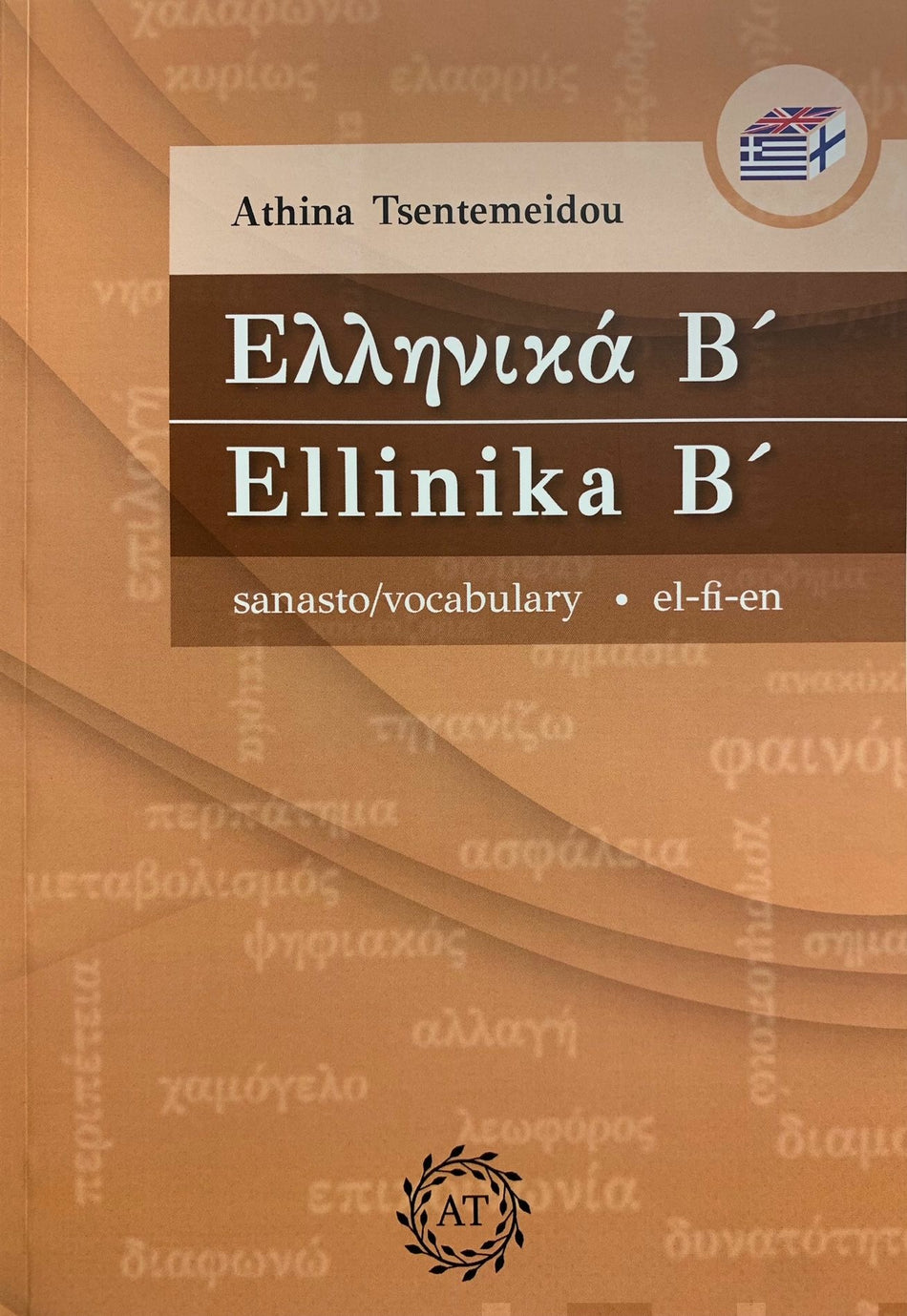 Oppikirjan Ellinika B' kolmikielinen sanasto sisältää 4076 hakusanaa sekä suomen että englannin kielellä. Kirjan lopussa on myös verbitaulukko, jossa on 670 verbiä.