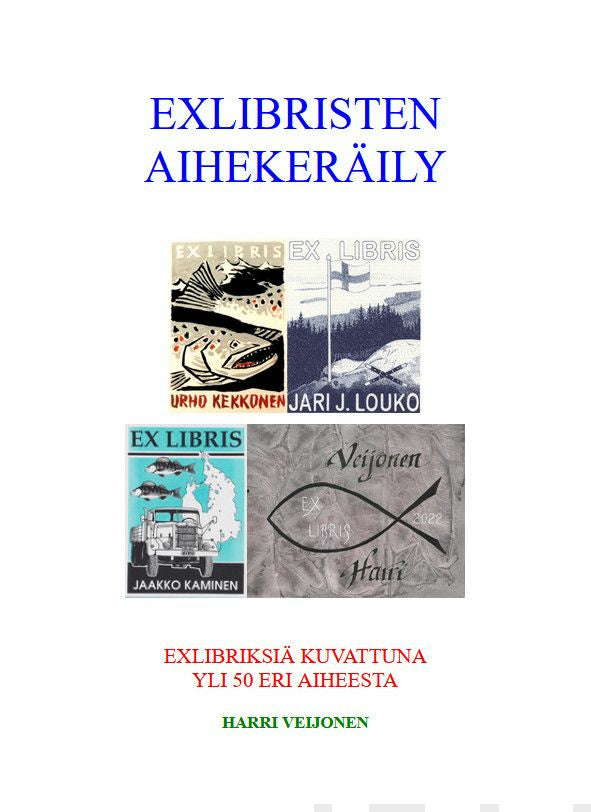 Vuoden 2023 alussa ilmestyi uusin kirjani "Exlibristen aihekeräily". Kaikkien exlibristen keräily on monille liian laajaa, mutta eri aiheiden keräily on suosittua. Mukaan olisin halunnut enemmänkin aiheita, mutta esimerkiksi "Jean Sibelius" - aiheesta minulla ei ollut merkkejä eikä kuviakaan.