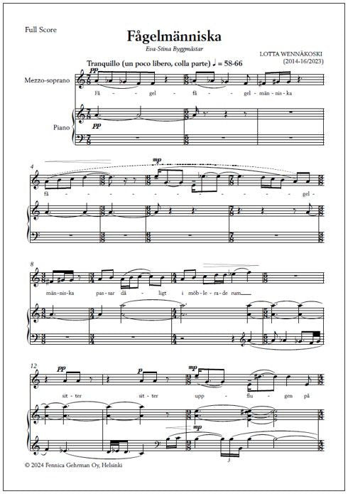 Fågelmänniska for mezzo-soprano and piano