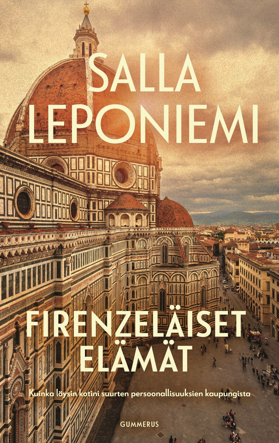 Salla Leponiemikin hullaantui Firenzeen, sen taideaarteisiin ja tuhansiin tarinoihin. Lopulta hän toteutti unelmansa ja hankki sieltä asunnon, vaikka paikallinen kiinteistönvälittäjä juonitteli kuin Medicit konsanaan. Kirjassaan hän kietoo hurmaavasti yhteen menneen ajan ihmiskohtalot, historian käännekohdat ja nyky-Italian arjen suomalaisnäkökulmasta.