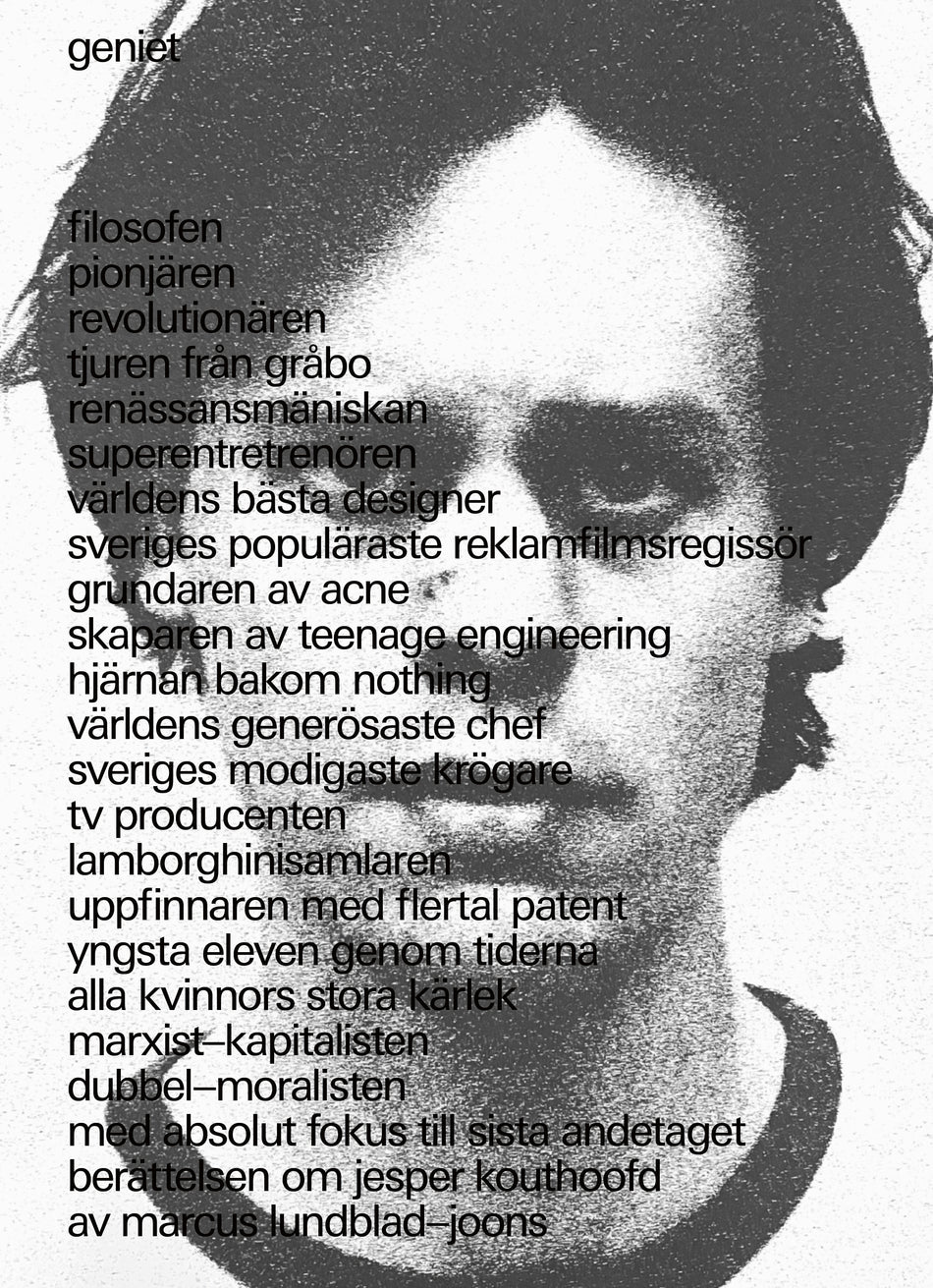 Det här är berättelsen om världens bästa designer, kreatörernas kreatör, uppfinnaren, marxistkapitalisten och dubbelmoralisten Jesper Kouthoofd.Avtrycken i samtidskulturen är många och starka. Få lämnas oberörda i kontakt med Jespers skapelser. Vi skakas om, roas eller oroas.Som hjärnan bakom Acn... Lue lisää