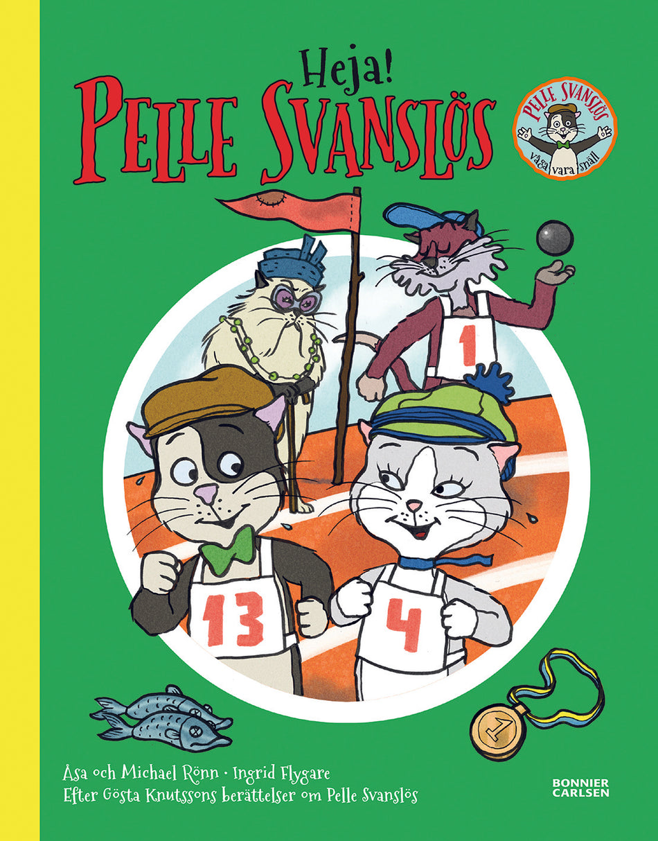 Det är äntligen dags för Kattmästerskapen i friidrott, och Uppsalas katter ligger i hårdträning för att tävla i löpning, kulstötning och höjdhopp. Men varför går det så dåligt för Pelle Svanslös?Måns och hans elake kusin Konrad arrangerar Kattmästerskapen och tar en saftig anmälningsavgift. Måns vinner nästan varenda gren när Maja skadar tassen, Biffen trillar omkull, och Pelle inte klarar att stöta sin misstänkt tunga kula. Men när det är dags för löpning visar det sig att det inte är så dumt att vara svanslös. Och att ha vänner som alltid ställer upp.Heja, Pelle Svanslös! baseras på Gösta Knutssons klassiska berättelse och Jan Gissbergs välbekanta Pelle Svanslös-illustrationer. Vi får möta alla Pelles vänner; Gullan, Maja, Trisse – och förstås Uppsalas mest vältränade katt Rickard från Rickomberga. Berättelsen präglas av Gösta Knutssons budskap: Trots att Måns och Konrad gör sitt bästa för att mobba Pelle Svanslös, visar Pelle att den som är snäll alltid vinner i längden.Berättelsen ingår även i samlingsutgåvan Berättelser om Pelle Svanslös.Denna utgåva är i det mindre, behändiga och prisvärda ekorrformatet.