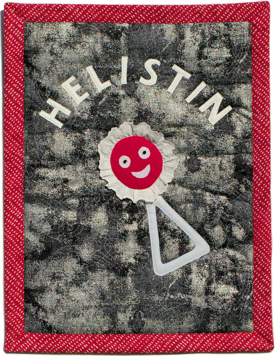 Sen jokainen ruutu on toteutettu kankaista applikoimalla ja käsin koristelemalla. Materiaalie...