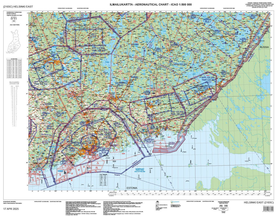 Helsinki East ilmailukartta Kartta, englanti; suomi