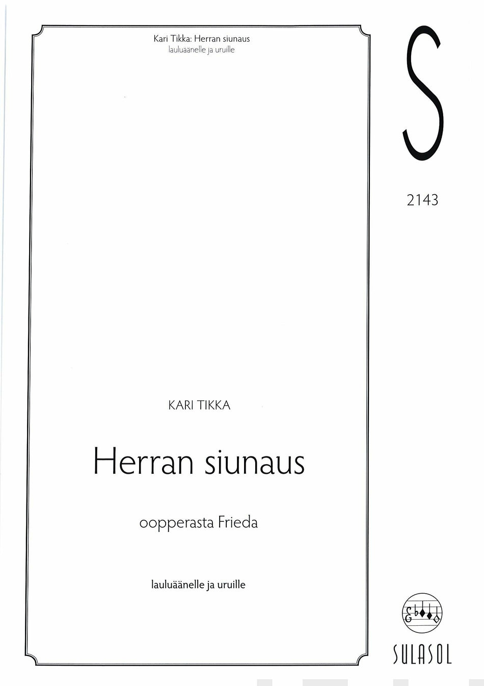 Pioiminto oopperasta Frieda laulajalle ja uruille. Lue lisää