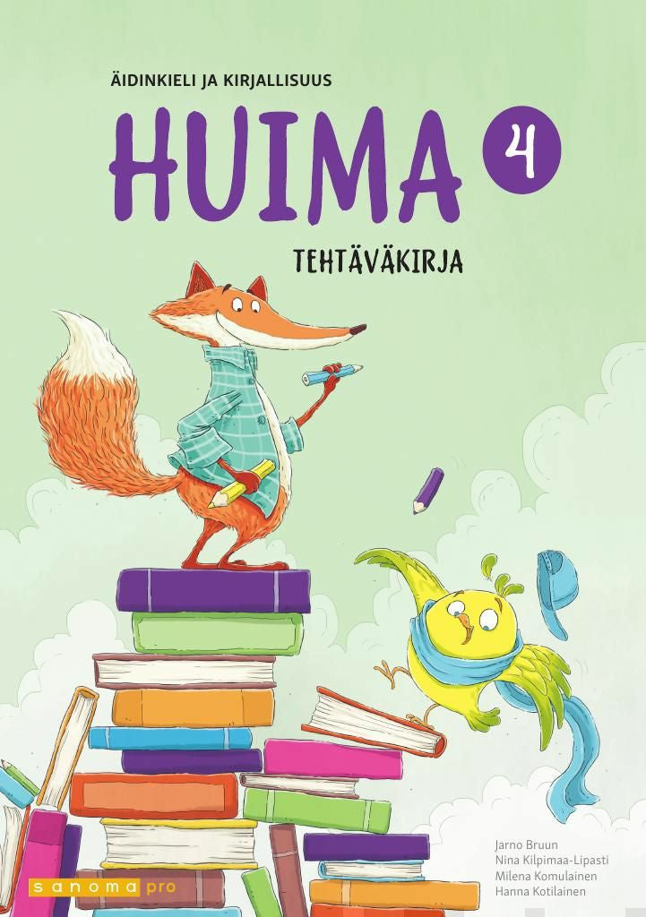 Neljännen luokan tärkeimpiä tekstilajeja harjoitellaan vaiheittain ohjeistettujen kirjoittamisen polkujen avulla. Oppilas voi valita kahdesta eri tasoisesta kirjoittamisen polusta itselleen sopivan. Vertaisarviointiin antavat tukea kynälintu ja lahjapaketit, joiden käyttöä harjoitellaan tehtäväkirjan alussa. Kynälinnun avulla arvioidaan kirjoitettua tekstiä ja lahjapakettien avulla suullista esitystä. Jakso päättyy Lukupäiväkirja-aukeamaan, johon oppilas voi kirjata tärkeimmät tiedot viimeksi lukemastaan kirjasta. Tehtäväkirjan viimeinen jakso on hauska opittuja asioita kertaava peli, jossa liikutaan seikkailujen valtakunnassa. Pelissä kerätyillä simpukoilla, timanteilla ja kävyillä oppilas ostaa rakennusaineita omaan maailmaansa, jonka hän rakentaa tehtäväkirjan viimeiselle aukeamalle. Uudistettuun Huima 4 Tehtäväkirjaan on opettajien toiveesta lisätty entistä enemmän kielitiedon harjoituksia.