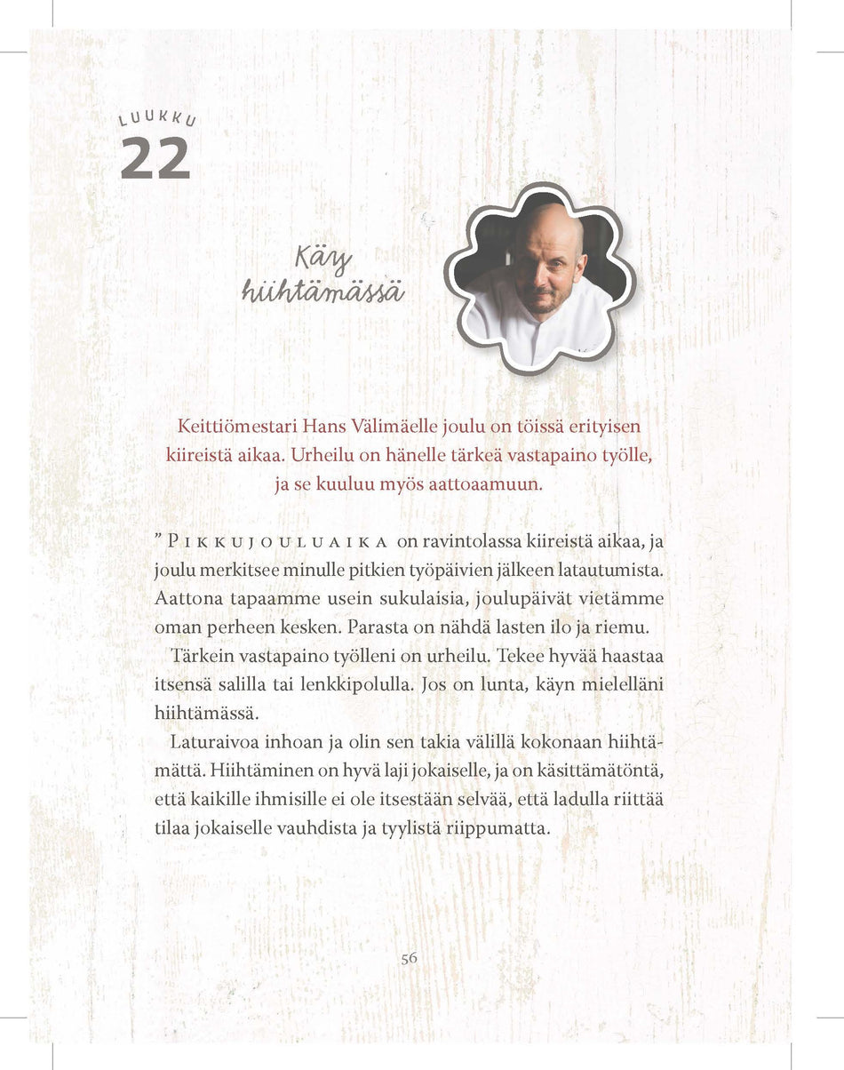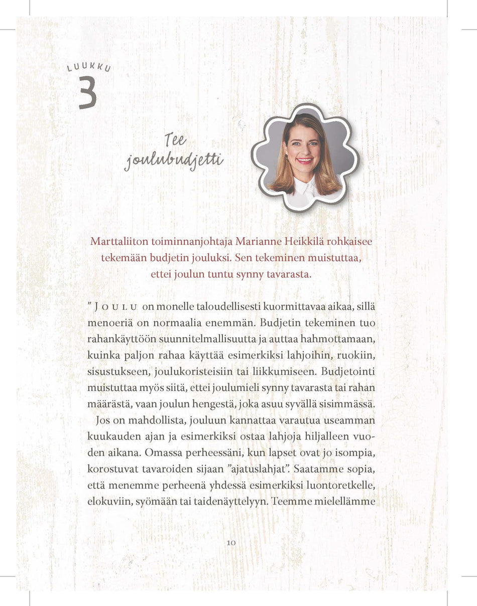 - Avainsanat hyvinvointi; joulu; julkisuuden henkilöt; valmistelu; jouluperinne; kiireettömyys; joulukalenterit