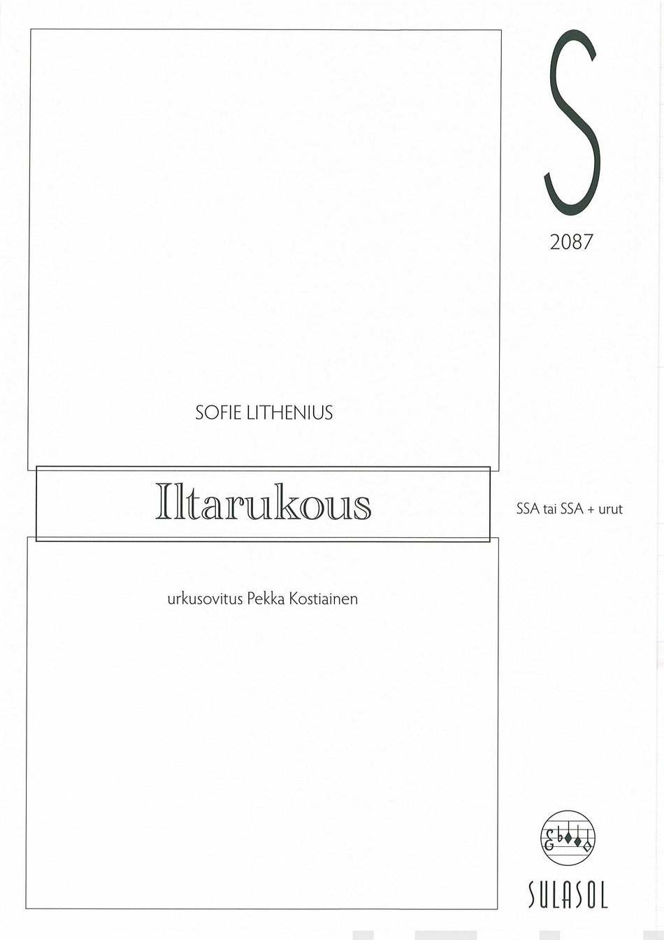 Sofie Litheniuksen kaunis Iltarukous diskanttikuorolle. Urkusovituksesta vastaa Pekka Kostiainen. Lue lisää