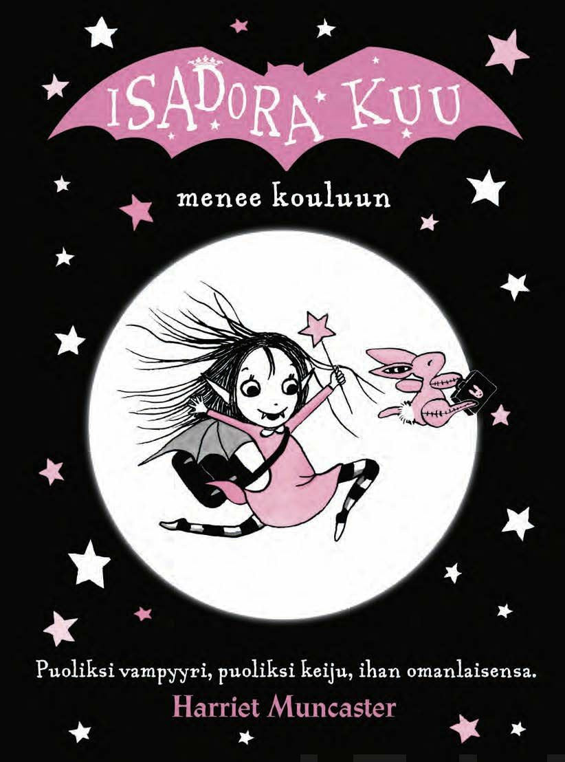 Isadoran äiti on keiju, isä vampyyri, ja hän itse on vähän kumpaakin. Isadora rakastaa yötä, lepakoita ja mustaa tutuaan, mutta hän rakastaa myös auringon paistetta, taikasauvaansa ja Pinkki- pupuaan. Pinkki on Isadoran paras ystävä, sillä Isadoran äiti loihti Pinkin eläväksi. Lue lisää
