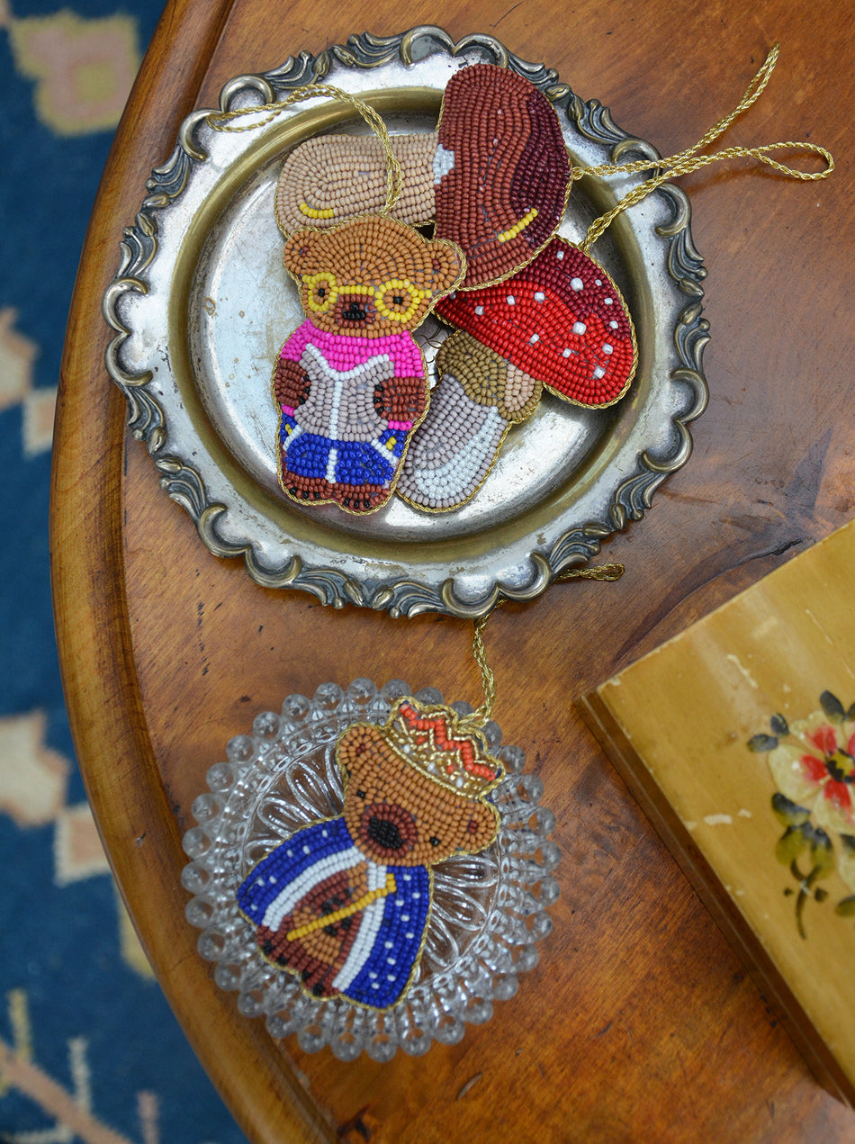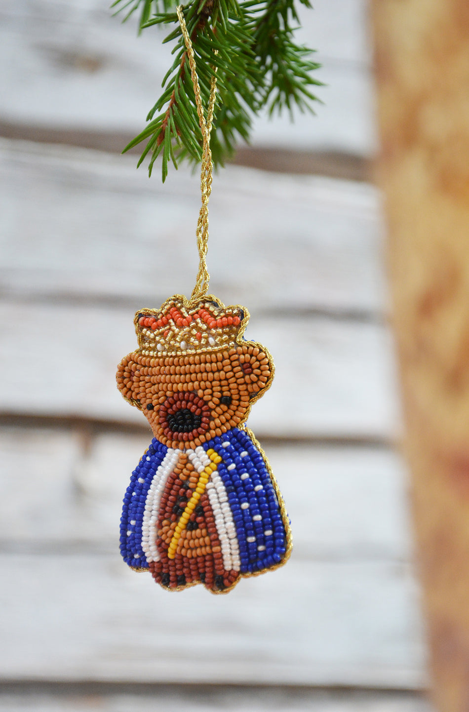 Lasihelmistä käsintehty ripustettava uniikki joulukoriste, jossa tekijän signeeraus Lue lisää
