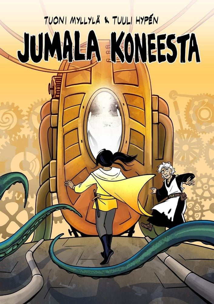 Tuoni Myllylä on turkulainen sarjakuvataiteilija ja loputtomien tarinanjuurien takoja. Jumala koneesta sijoittuu Tuonin luomaan fantasiamaailmaan Alwoeriniin. Siellä on seikkailtu myös albumeissa Jumalsurma 1-3, Alhaiset ja Kuoleman pidot.