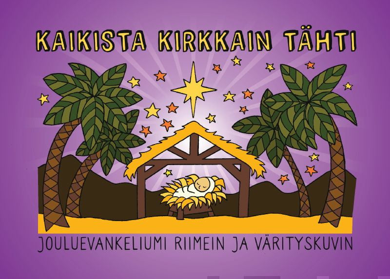 Jouluevankeliumi runon muotoon riimiteltynä ja joulutähden silmin kerrottuna. Halutessasi voit värittää kuvituksena olevat 8 jouluaiheista kuvaa. Sisältää myös jouluevankeliumin vuoden 38 raamatunkäännöksen mukaan. Lue lisää