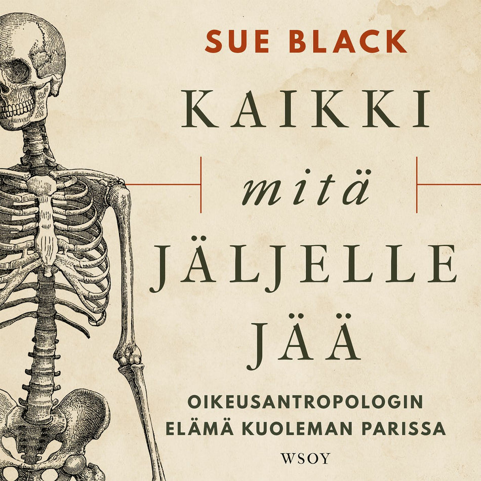 Sue Black on tekemisissä kuoleman kanssa päivittäin. Anatomian ja oikeusantropologian professorina hän tutkii ihmisten maallisia jäännöksiä laboratoriossa ja hautausmailla, henkirikosten tapahtumapaikoilla sekä luonnonkatastrofien ja sotien näyttämöillä. Muistelmateoksessaan Kaikki mitä jäljelle jää Black paljastaa lukijalle kuoleman moninaiset kasvot. Lisäksi hän kertoo uransa kiinnostavimmista tapauksista ja valottaa, miten oikeusantropologian kehitys on mahdollistanut aiemmin selvittämättä jääneiden rikosten ratkaisemisen. Sue Black kirjoittaa aiheestaan pelottomasti, myötätuntoisesti ja hauskasti ja saa lukijan näkemään elämän vääjäämättömän päätepisteen uudessa valossa.