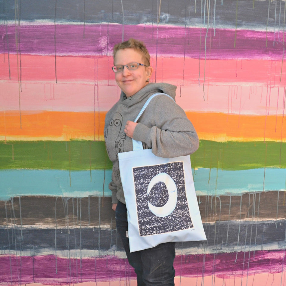 Suomessa valmistettu kangaskassi, johon painatettu upea erityistaiteen teos. Tuotteen valmistus työllistää kehitysvammaisia ammattilaisia. Lue lisää