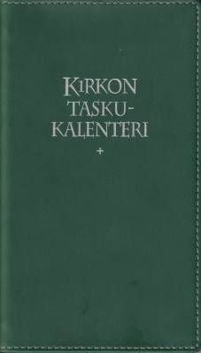 Kirkon taskukalenteri 2026 + tummanvihreät pujotuskannet + kynäpidike