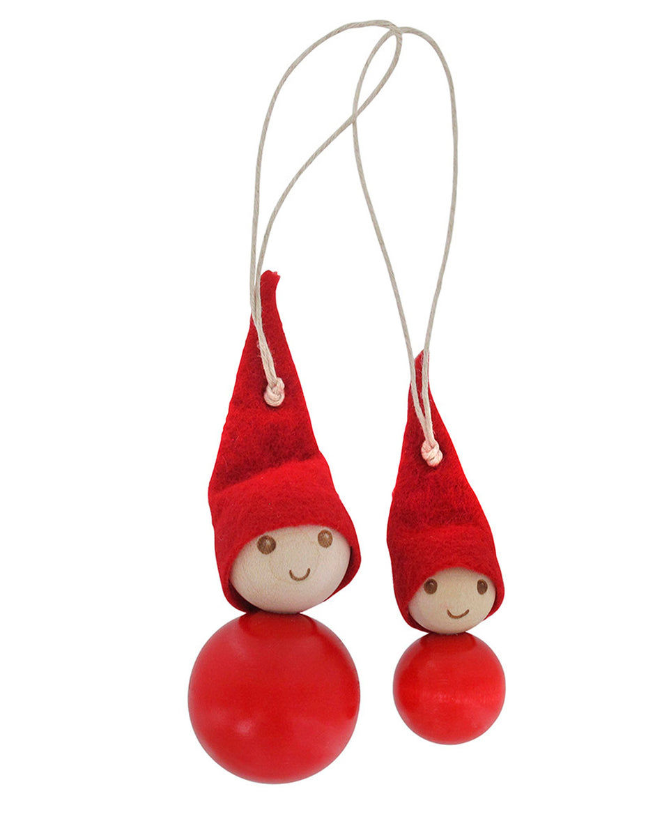 Aarikan ripustettavat tontut. Settiin kuuluu kaksi erikokoista tonttua, joiden pituudet ovat 16 cm ja 11 cm. Valmistettu käsityönä Suomessa. Lue lisää
