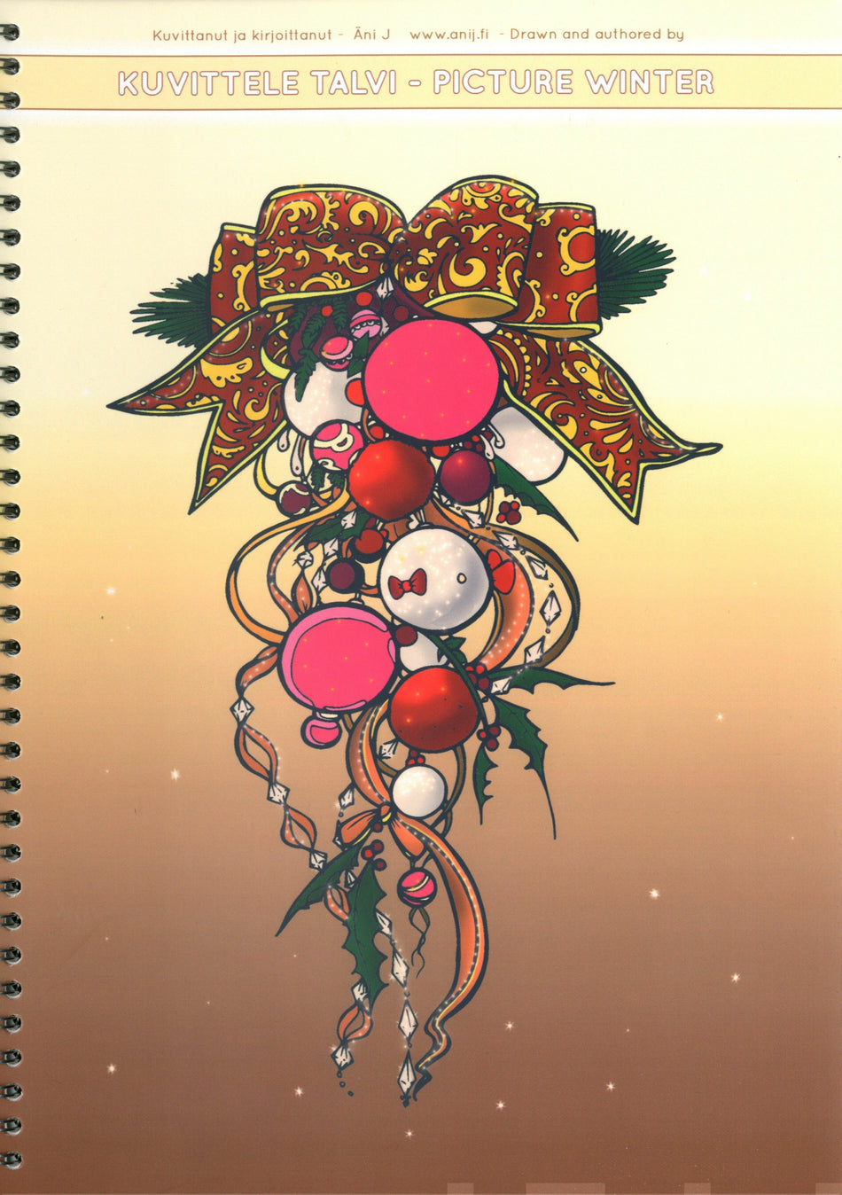 Kaikki kirjan kuvat ovat käsin piirtämiäni, ottaen huomioon kaikenikäiset värittäjät. Sivut ovat tarpeeksi paksuja esim. tussien käyttöön ja niistä voi tehdä vaikkapa kortteja, kutsuja tai kehystää tauluiksi.