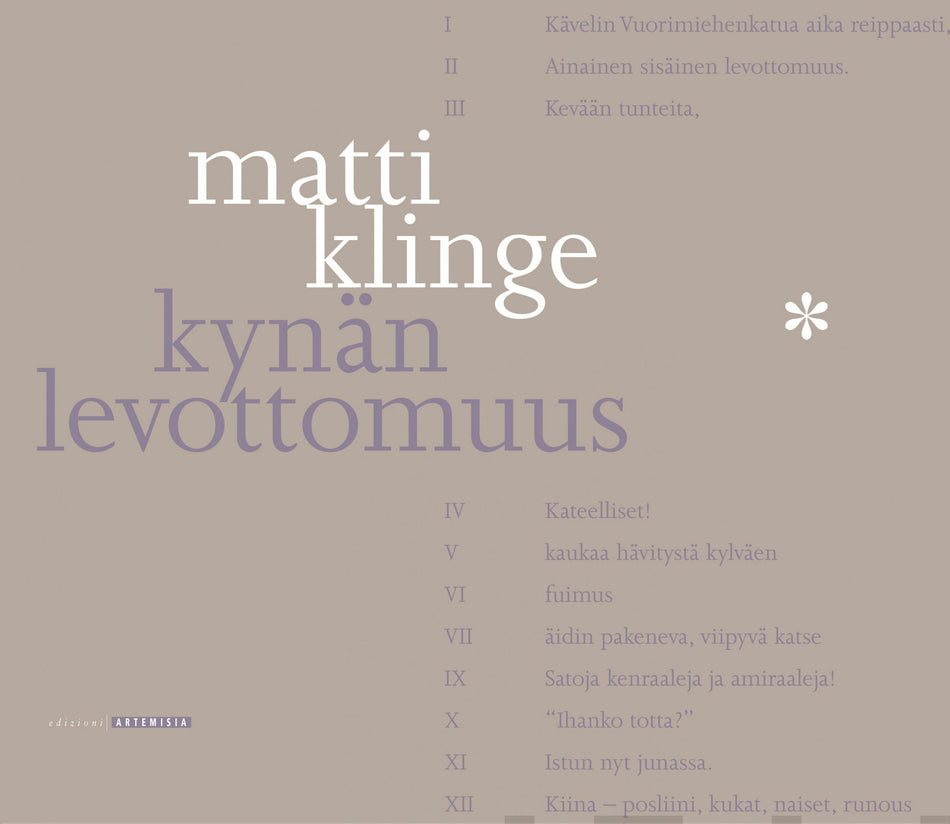 Matti Klingen kahden vuoden aikana kirjoitetut runot ovat kuin kävelyretkiä kulttuurihistoriaan, pysähdyksiä keskustelemaan suurten kirjailijoiden, poliitikkojen, ystävien kanssa. Niissä aukeaa tuokiokuvia elämästä, menneestä ja tulevasta. Antiikin filosofia ja Ranskan vallankumous tuntuvat tutui... Lue lisää
