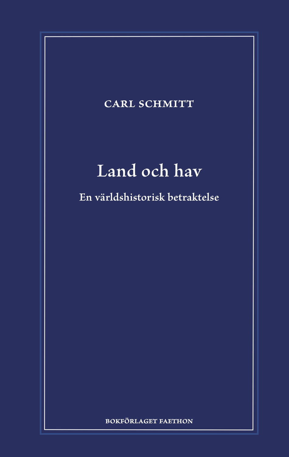 Carl Schmitt (18881985) var en tysk rättsfilosof som främst gjort sig känd för sina teorier om det suveräna och politisk teologi. Han är en av de mest inflytelserika stats- och folkrättsteoretikerna under 1900-talet. Omstridd inte bara för sina idéer, utan också för sitt nationalsocialistiska engagemang och sin juridiska praktik i tredje riket. Land och hav (1942) beskriver de grundläggande villkoren landet och havet både för den mänskliga existensen och som det avgörande innehållet i såväl internationell rätt som krig. De olika nationernas syn på rummet avgör deras förståelse av politik, krig och fred. I boken ställs frågan om vad som är »jordens nomos« och om det finns möjlighet för en global fred. Viktor Brylla har översatt och Carl-Göran Heidegren har skrivit efterordet.