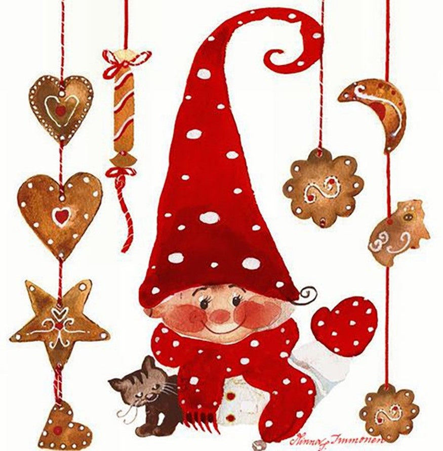 Havin valmistamat kotimaiset lautasliinat. Veikeä Tonttupoika kuosi on Minna Immosen käsialaa. Lautasliinat ovat painettu Imatralla 3-kertaiselle pehmopaperille ja niille on myönnetty Avainlippu. Lue lisää