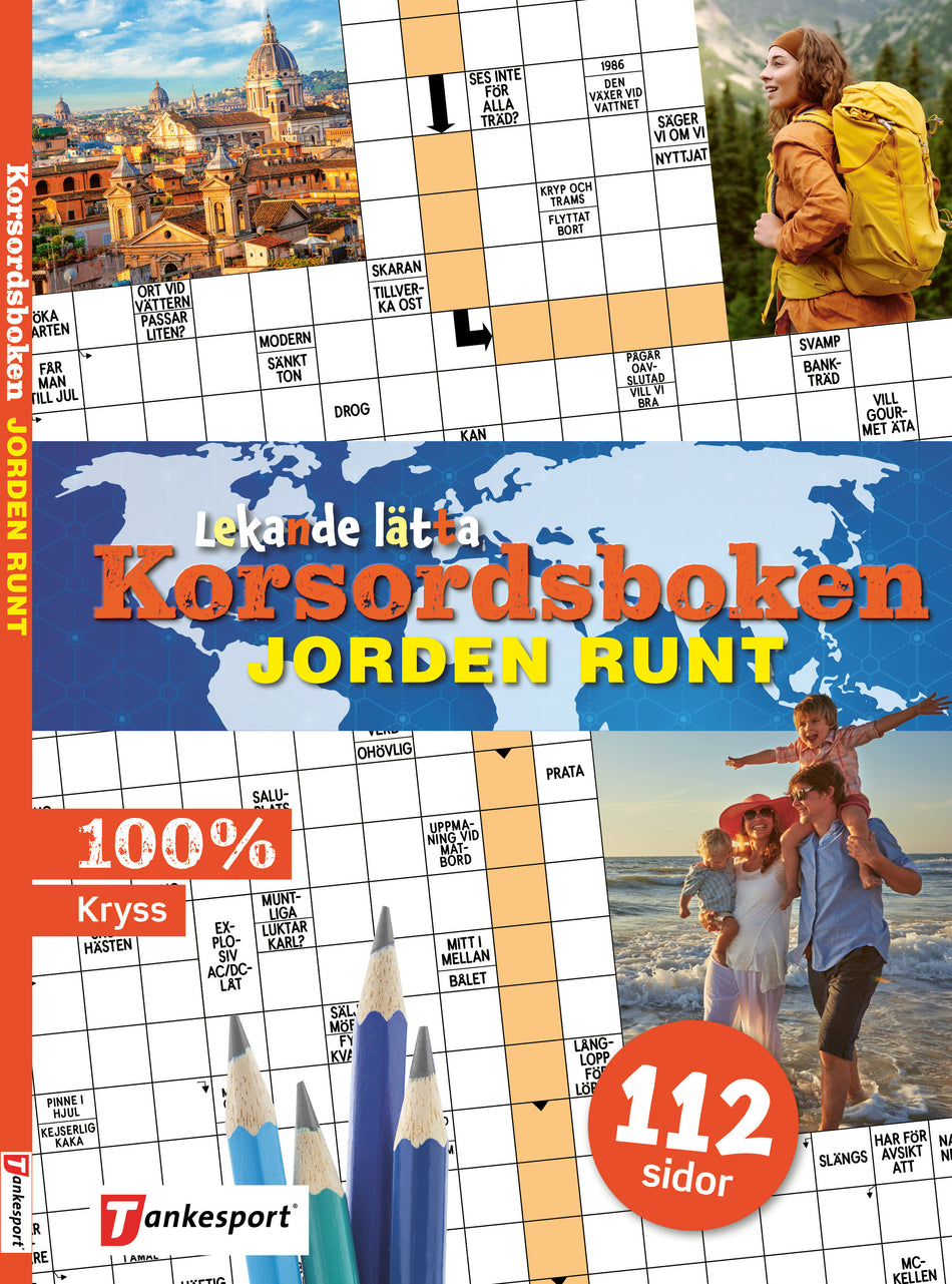 Lekande lätta korsordsboken Jorden runt är en färgglad och rikt illustrerad korsordsbok med bildkryss på lätt nivå. Följ med till resmål i Sverige och runt om i världen med våra lätta korsord. Att lösa korsord är en svensk folksport: 7 av 10 svenskar löser korsord någon gång ibland, och många löser korsord varje dag. Det är avkopplande underhållning som samtidigt stimulerar tankeverksamheten. Som titeln utlovar så innehåller denna bok 100% kryss. Lekande lätta korsordsboken Jorden runt är en korsordsbok från Tankesport, Sveriges ledande förlag inom korsord och annan braintainment och står för tankesport av högsta klass. Boken bjuder på många timmars underhållning på lättsam nivå.