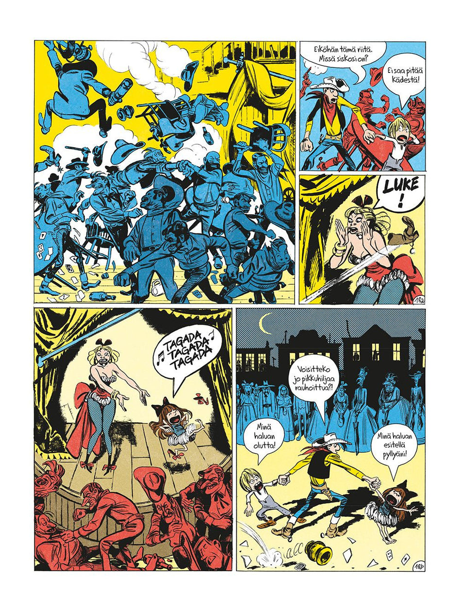 Blutch eli Christian Hincker nousi 1990-luvulla ranskalaisen sarjakuvan kirkkaimpaan kärkeen. Nyt tämä useasti palkittu sarjakuvantekijä pääsee esittelemään oman tulkintansa legendaarisesta Lucky Lukesta. Nykysarjakuvan jättiläinen on jo näyttänyt kyntensä historiallisten aiheiden käsittelijänä, joten herran näkemystä Villistä lännestä odotetaan vesi kielellä ympäri maailmaa. Ranskassa tämä albumi on ehdottomasti sarjakuvavuoden suurimpia tapauksia. Luvassa on villiä viivankäyttöä ja kurittomia kakaroita, kun Blutch ottaa haltuunsa Morrisin luoman maailman.