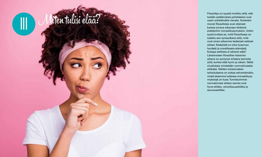 Lukion filosofia kurssi FI2 Etiikka. Kirjan sisältö on laadittu 2021 voimaan astuvan uuden opetussuunnitelman mukaan. Kirjan lopussa on laaja lukemisto, joka täydentää ja laajentaa kirjan sisältöjä. Lue lisää