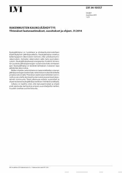 LVI 34-10557, Rakennusten kaukojäähdytys. Yhtenäiset laatuvaatimukset, suositukset ja ohjeet. J1/2014