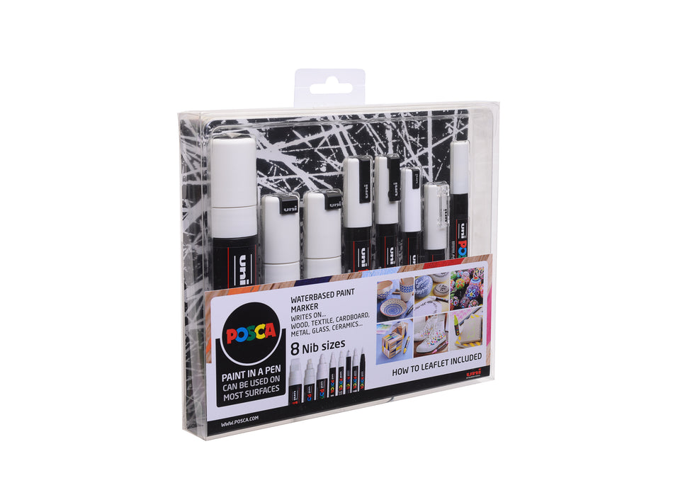 Maalikynä 8 kpl Posca valkoinen eri kokoja