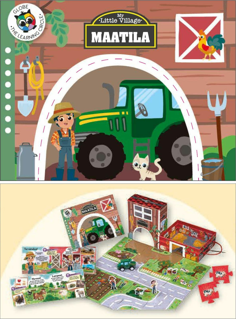 Hauska puuhapakkaus sisältää mahtavan 16- sivuisen kirjan, joka kertoo kaiken traktoreista ja maatilan elämästä ja sen eläimistä!