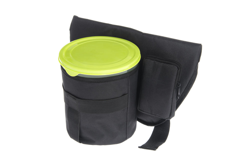 Erinomainen apu pensasmerjojen poiminnassa! Mahdollistaa molempien käsien käytön. Vyön max. pituus 125 cm, sanko 3.6L. Vyössä myös pieni tasku esim. avaimille. Kannelle oma paikka sangon edessä. Lue lisää