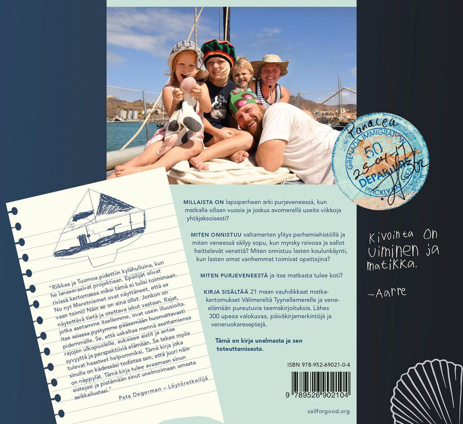 - Avainsanat lapsiperheet; elämänmuutos; valokuvat; Purjehdus; matkapurjehdus; kotikoulutus; arki; purjehdus; merimatkat; maailmanympärimatkat; purjeveneet