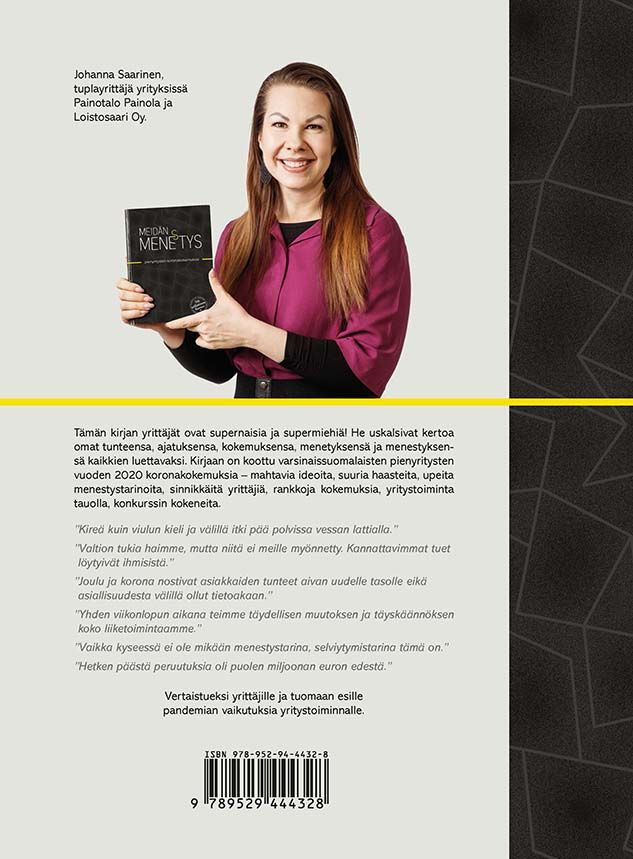 Meidän Mene(s)tys - pienyritysten koronakokemuksia kertoo yrittäjien näkökulmasta mitä yrityskentälle kuului vuonna 2020. Kirjassa käsitellään niin yritystukia ja kehitystyötä kuin kivijalkaa ja verkkokauppaa, arjen jaksamista unohtamatta. Kirja kertoo yrittäjyyden erilaisista hetkistä koronavuon... Lue lisää
