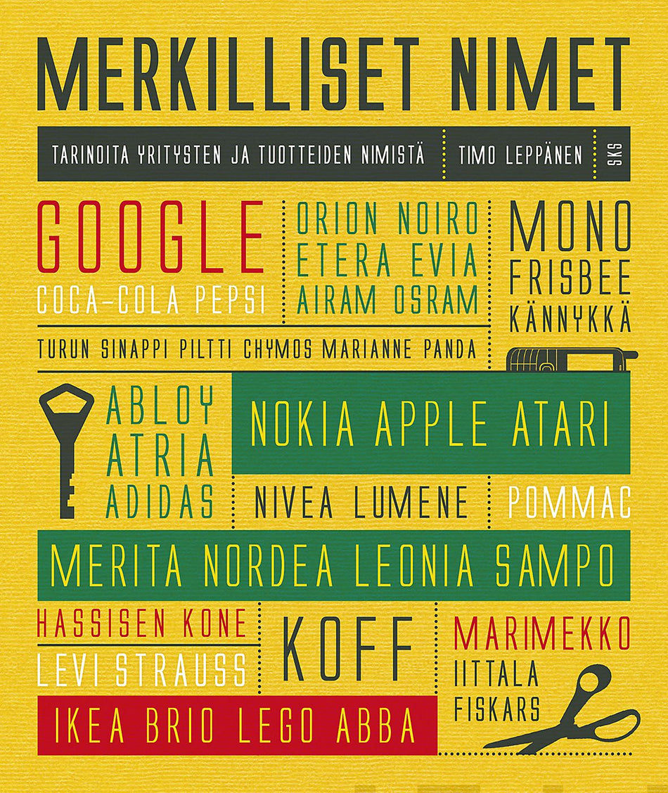 Merkilliset nimet kokoaa yhteen yli sata tarinaa suomalaisille tuttujen yritysten ja tuotteiden nimistä. Osa nimistä on syntynyt sattumalta, osa tarkan analyysin tuloksena.