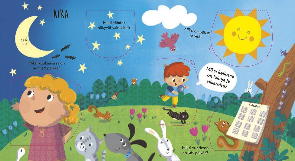 Tiedonjanoiset kasvuikäiset esittävät loputtomasi kysymyksiä Tässä kirjassa on vastauksia pohdintoihin ympäröivästä maailmasta. Hauskat kurkistusluukut ja selkeät selitykset kiehtovat pienten lukijoiden uteliasta mieltä. Lue lisää
