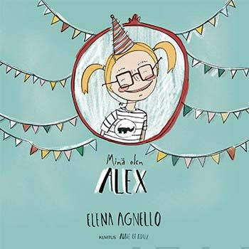 "Minä olen Alex. Tänään minulla on synttärit. Ystävät tulevat minulle kylään, mutta ihan kaikki ovat tervetulleita. Tule sinäkin!"