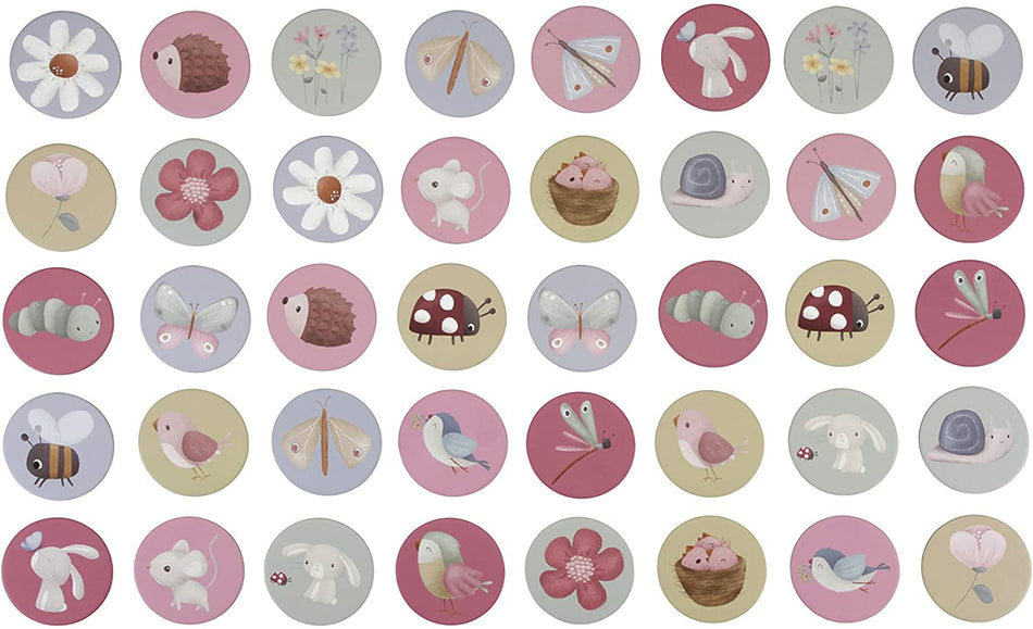 Muistipeli Flowers & Butterflies. Pelissä seikkailee pienet metsän eläimet ja kasvit, kuten perhoset,hiiret,mehiläiset,leppäkertut ja kukkaset. Peli opettaa lapsia odottamaan omaa vuoroaan. Voidaan pelata yksin tai ryhmässä. Sisältö yhteensä: 40 kpl. FSC-puuta. Ikäsuositus 3+ Lue lisää
