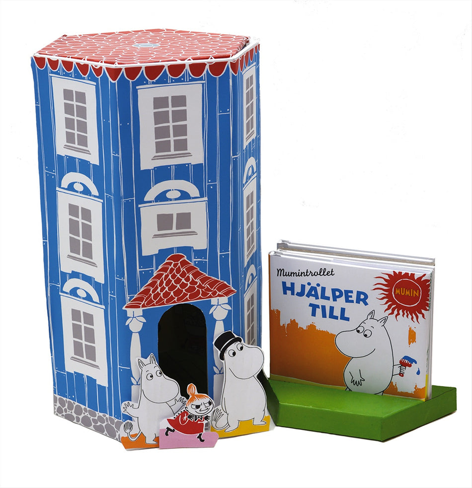 Huset, gjort av hård kartong, går att öppna som ett "dockskåp". Inredningen är färgglad och inbjudande, och med huset följer flera stadiga figurer att leka med. Dessutom finns här alltså tre fina mini-bilderböcker: Mumintrollet hjälper till, Mumintrollet går vilse och Mumintrollets vinter.