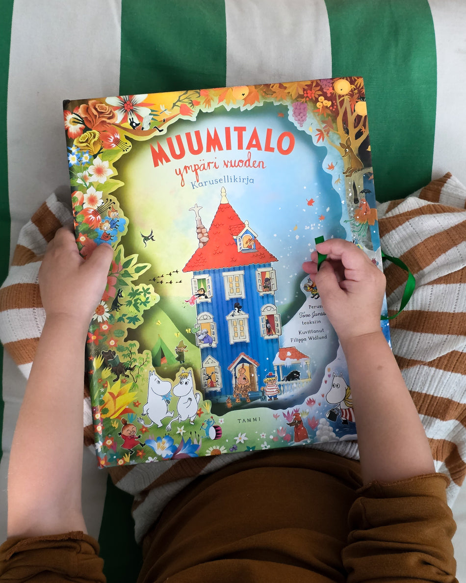 Kiehtova karusellikirja Muumitalon vuodenajoista.