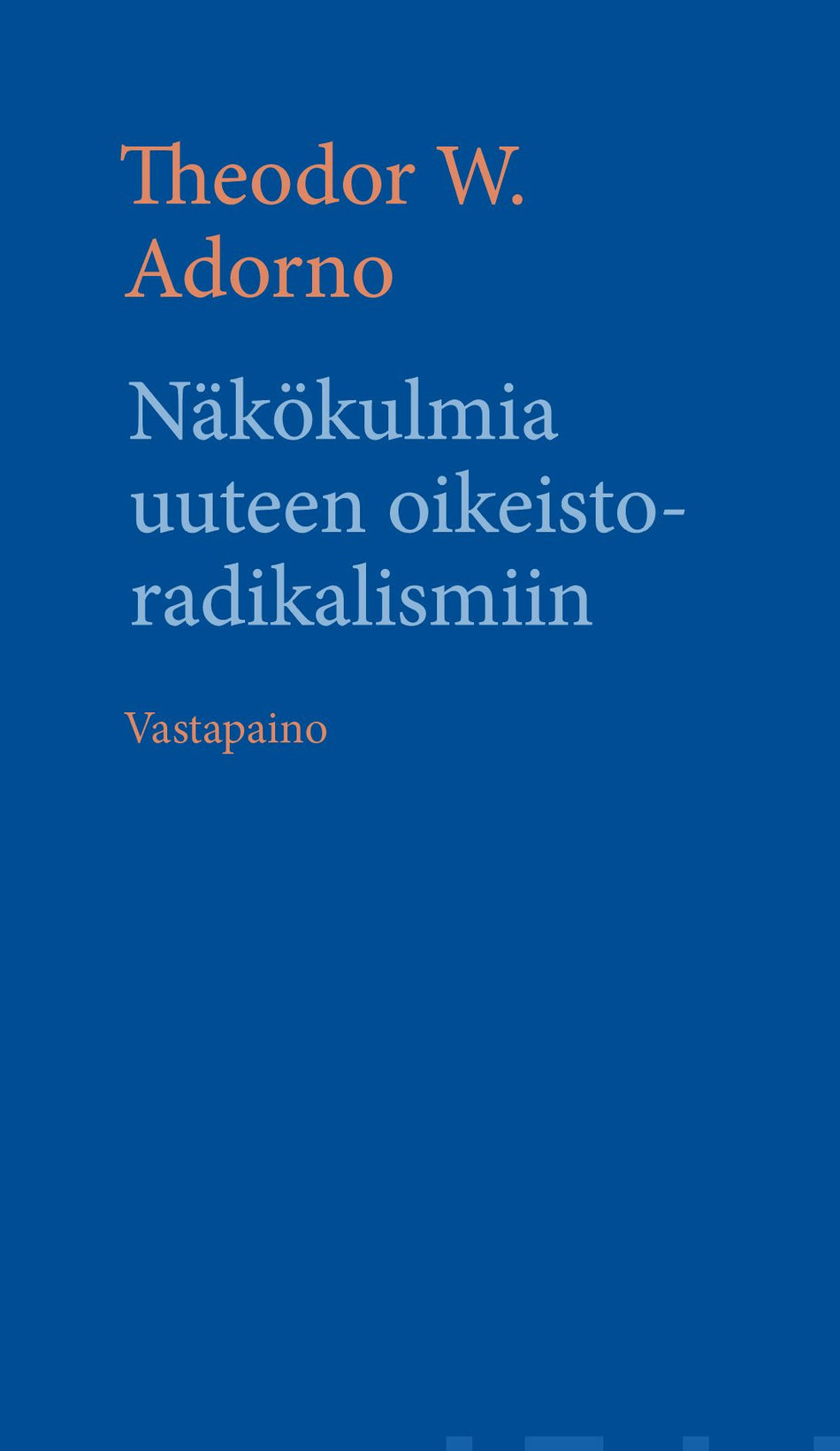 Theodor W. Adornon alun perin vuonna 1967 pidetty luento "Näkökulmia uuteen oikeistoradikalismiin" osoittaa filosofin olleen myös terävä aikalaisanalyytikko. Sen lisäksi, että luento avaa kiinnostavan ikkunan omaan aikaansa, Adornon huomiot vaikuttavat kuvaavan suoraan meidän nykytodellisuuttamme... Lue lisää