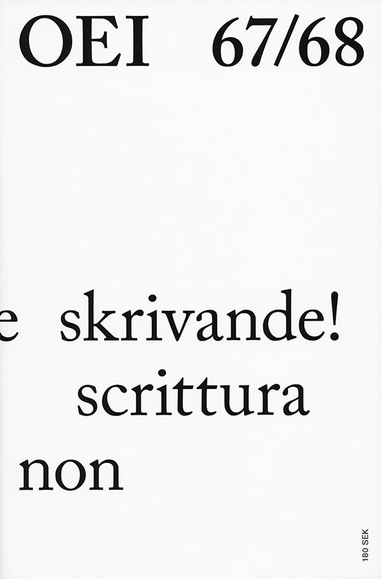 Såsom framgår redan av titeln tar numret sitt avstamp i ett visst språkområde – det italienska – och fokuserar därtill på vissa former av icke-bekräftande skrivande från sextiotalet till i dag. Men för att undvika onödiga missförstånd kan det vara på sin plats att först klargöra vad numret inte är. Alltså: OEI #67–68 är varken ett nummer om ”samtida italiensk poesi” eller om experimentellt skrivande i Italien under efterkrigstiden, för att nämna två till synes närliggande exempel. Allra minst är det ett försök att presentera ett kanoniserat eller kanoniserande urval av undersökande italiensk poesi från sextiotalet fram till i dag. Tvärtom har arbetet hela tiden avsett att kritisera den alltjämt förhärskande mytologiska konstruktion enligt vilken det, oberoende av vissa estetiska och politiska dispositiv, skulle finnas ”bra” eller ens ”intressant” litteratur. Närmare bestämt är det just dessa dispositivs självklara plats i dagens och gårdagens samhällen som utgör måltavlan för de konstnärliga och teoretiska projekt vi har valt att uppmärksamma i detta nummer. Vad som har attraherat oss är ett svårbestämbart fält där politiska och estetiska kategorier träder in i varandra och omvandlas, vilket blir tydligt hos så olika poeter och konstnärer som Gianfranco Baruchello, Alessandro Broggi och Eugenio Miccini.