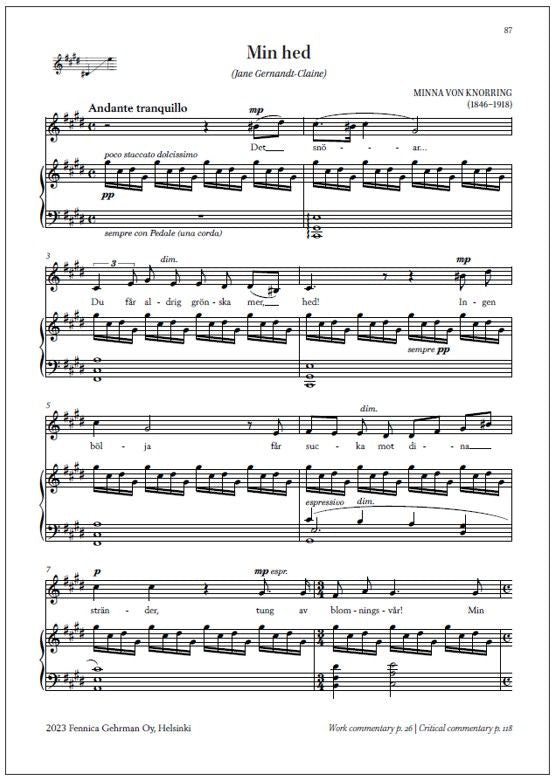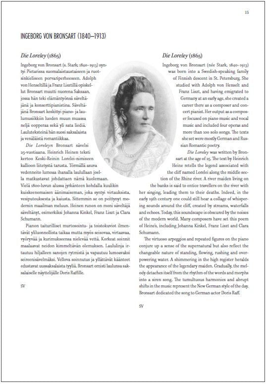 on valittu 22 suomalaisen naisen säveltämiä teoksia 1840-1940-luvuilta. Kokoelman kaksikymmentäkaksi yksinlaulua ovat tiivistetty näyte laajasta ja monipuolisesta musiikkikulttuurista, jossa yksinlaulu ja säveltäjänaisten työ ovat kukoistaneet Suomessa ja muualla. Laajaan joukkoon arkistolähteitä perustuvat säveltäjä- ja teosesittelyt sekä nuottilähteiden kriittinen kommentaari suuntaavat odotetun valokeilan säveltäjänaisten luovaan ja rikkaaseen tuotantoon.