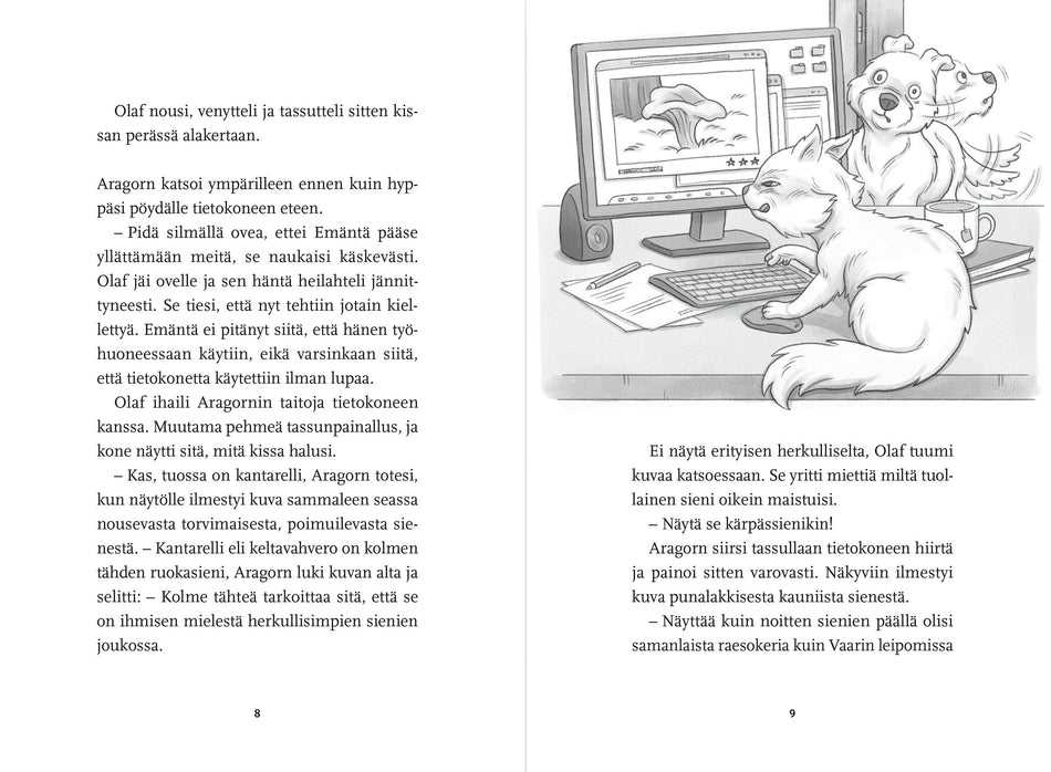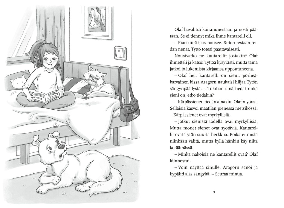Poika ja tyttö ovat lukeneet, että koiran voi kouluttaa etsimään kantarelleja. Niinpä he alkavat kouluttaa Olafia ja perheen muita koiria sienikoiriksi. Voi sitä nuuskutuksen määrää! Metsästä voi löytää vaikka mitä, sen saavat Olaf ja muutkin todeta, kun Olaf jäljittää sienien sijaan kissaperheen. Miten villikissoille käy? Ja löytyykö niitä kantarelleja lopulta ollenkaan?