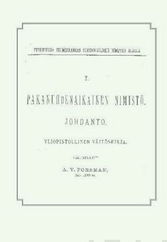 Tutkimuksia suomenkansan persoonallisen nimistön alalla. I. Pakanuudenaikainen nimistö. Johdanto on suomalaisen henkilönimitutkimuksen uranuurtajan A. V. Forsmanin (vuodesta 1906 Koskimies, 1856-1929) lisensiaattityö vuodelta 1891. Teos tutkii suomalaisia etu- ja sukunimiä muinaishistorian ajoilt... Lue lisää