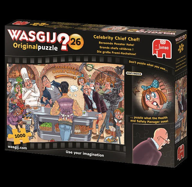 Suositun Wasgij-palapelisarjan hauska Orig 26 Celebrity Chief Chef! palapeli. Älä kokoa mitä kuvassa näet, vaan mitä alapuolella tapahtuu. 1000 palaa Valmiin palapelin koko 69 x 49. Lue lisää