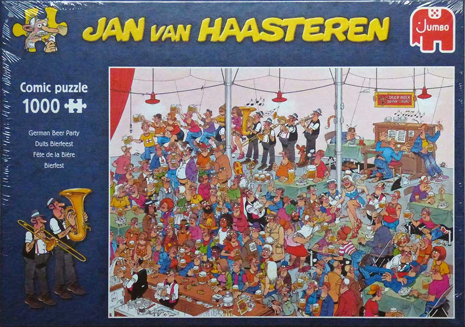 Suositun Jan van Haasteren-palapelisarjan humoristinen palapeli, German Beer Party 1000 palaa. Valmiin palapelin koko 69 x 49 cm Lue lisää