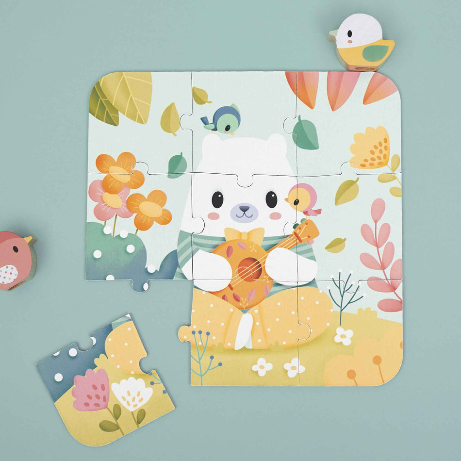 Janod Eläimet palapelisalkussa on kuuden, yhdeksän, kahdentoista ja kuudentoista palan palapelit, joihin on kuvattu suloisia eläimiä. Palapeleissä on selkeät kuvat, jotka pienen lapsen on helppo hahmottaa. Lue lisää