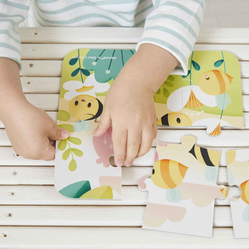Värikäs ja hauskasti kuvitettu palapelisetti sisältää neljä palapeliä. Janod Eläimet palapelisalkussa on kuuden, yhdeksän, kahdentoista ja kuudentoista palan palapelit, joihin on kuvattu suloisia eläimiä. Palapeleissä on selkeät kuvat, jotka pienen lapsen on helppo hahmottaa. Palapelit on pakattu kivaan salkkuun, jonka sisällä palat pysyvät hyvässä tallessa. Palapelien kokoaminen vahvistaa tuntoaistia, näönvaraista hahmottamista, motoriikkaa ja silmä-käsi-yhteistyötä. Palapelin palat ovat tukevaa, paksua kartonkia ja palat ovat reilun kokoiset. Valmiin palapelin mitat: 20 x 20 cm. SISÄLTÖ: Neljä palapeliä (6, 9, 12 ja 16 palaa) sekä juliste.