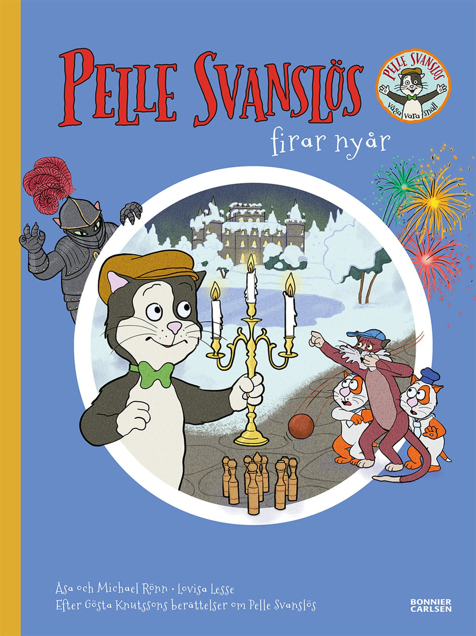 När Pelle berättar för de andra katterna att hans människofamilj ska fira nyår på ett slott vill alla följa med. Det blir en härlig helg med både uppfriskande kallbad och mys framför brasan. Men när katterna ska tävla på slottets kägelbana verkar det inte gå helt schysst till. Och det sägs dessut... Lue lisää